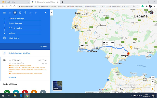 Salimos de Málaga el 25 de junio en sentido anti horario ya que no se podía aun pasar a Portugal y volvimos el 26 de julio.