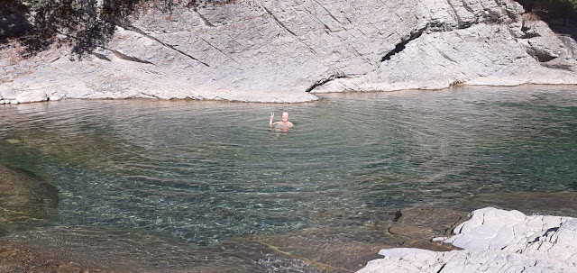 Nada más salir a las 9 de la mañana nos dirijimos a la zona de baño del río Bellós por donde discurre la carretera que conduce al Añisclo, y no pudimos resistirnos a darnos un baño en sus frias pozas.
