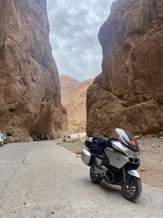 Y aquí me fijo en la primera GS1300 con matricula marroquí del viaje que habría mas, pero si me las cruzo no se de donde es la matricula, estaba aparcada, pero era de alquiler y conducida por unos galeses; curiosidades me da por buscar lo que cuesta una en Marruecos, pero en la web oficial, no trae precio como España, asi que quedo con la duda, pero una de las que si mire como curiosidad y comparar precios era una CFMoto 450, y en Marruecos su precio era de 1000 € mas cara que aquí, asi que si en un moto de 6500 hay esa diferencia en una GS me queda la duda.