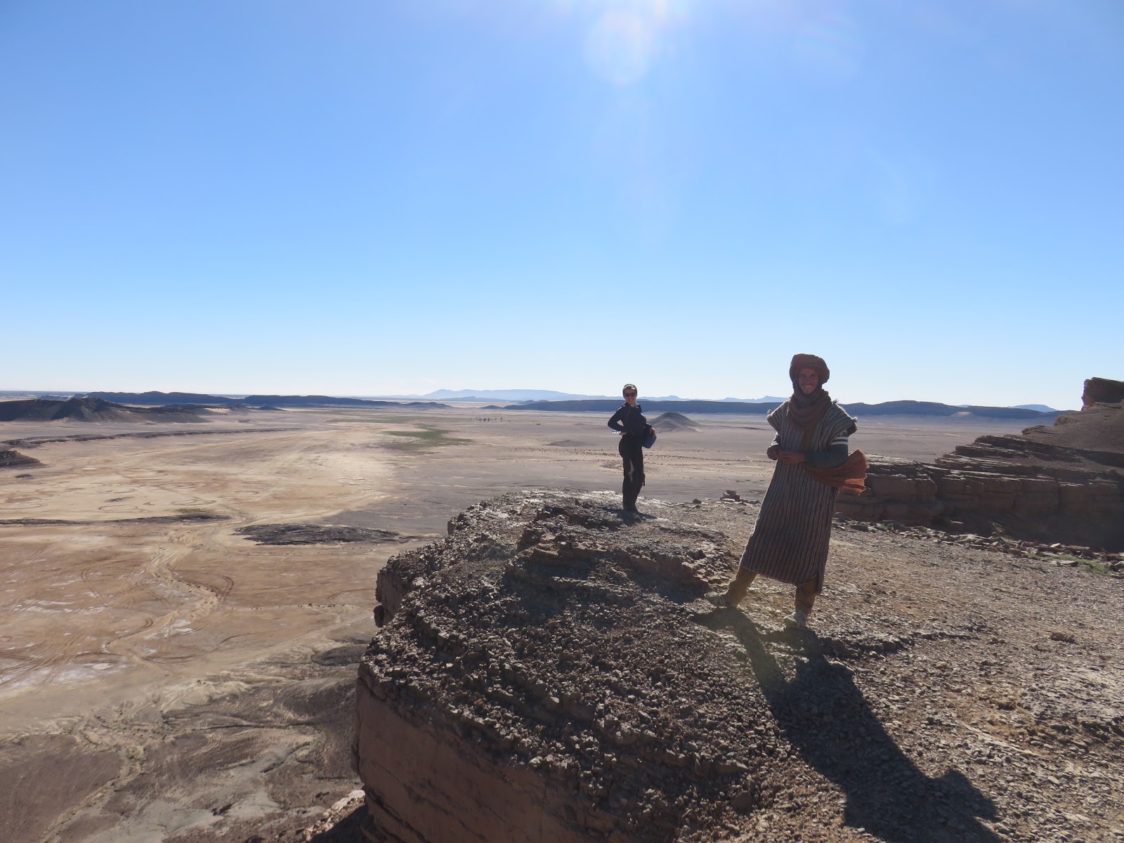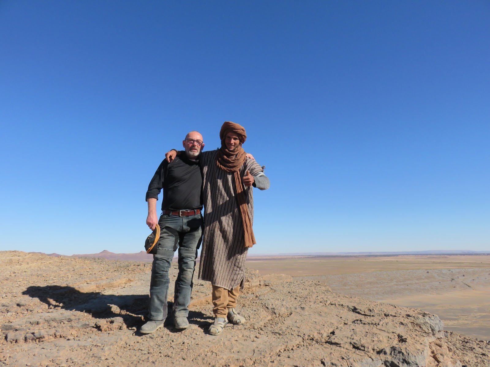 Por el camino a lo lejos, un coche en el arcén pide ayuda, a mi todavía me queda el amargo recuerdo de años atrás en que en una situación similar, paramos mi compañero y yo. En ambas ocasiones nos dieron una nota manuscrita, para dejarla en algún lugar que nos pillaba de paso y así los vendrían a rescatar. Años atrás no entregamos la nota ya que finalmente no nos pilló tan de paso. Eso siempre ha pesado sobre mi consciencia. En esta ocasión era la misma situación...familia en el arcén y una nota manuscrita en árabe para entregar en la próxima población. La diferencia es que ahora todos llevamos teléfonos incluso les ofrecía llamar desde el mio, pero no, había que entregar ese papel para que avisaran al mecánico. Dimos con el lugar y entregamos la nota. En agradecimiento, nos invitaron a un té y a entrar en su tienda a comprar algo. Entre risas y cachondeo por haber caído como dos pardillos, pude liberar el peso de mi culpa.