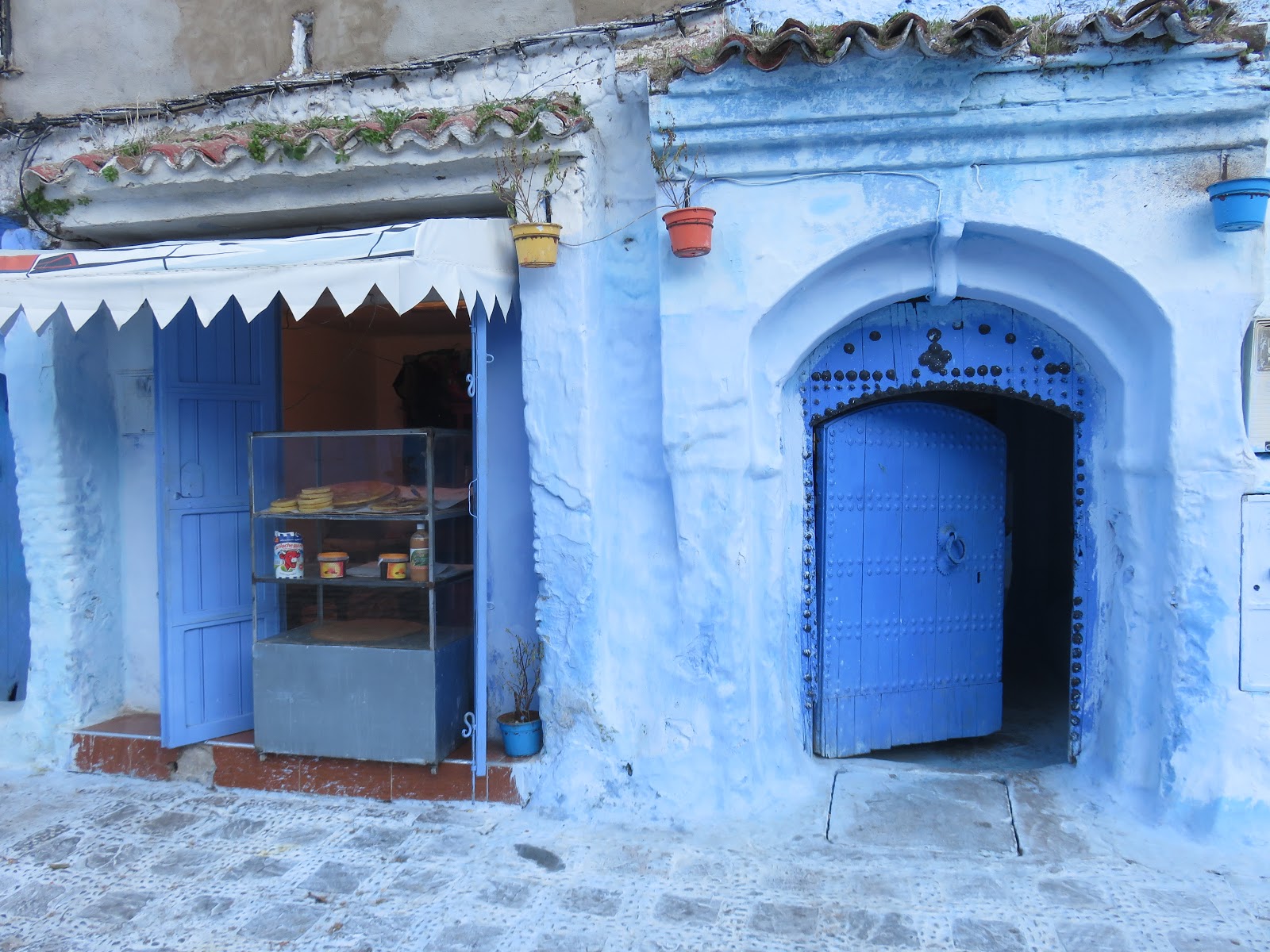 Cenamos nuestro primer Tagin y Cous Cous en un lugar bastante frío, pero era lo mejor que encontramos después de pasear un rato por el concurrido pueblecito azul.