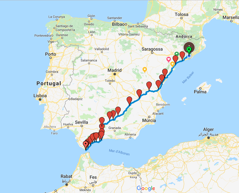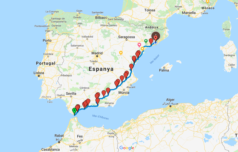 Última jornada, un día duro, Algeciras-Barcelona, parando lo justo y necesario. Frío, viento y cansancio, no van a poder eclipsar los momentos vividos.
